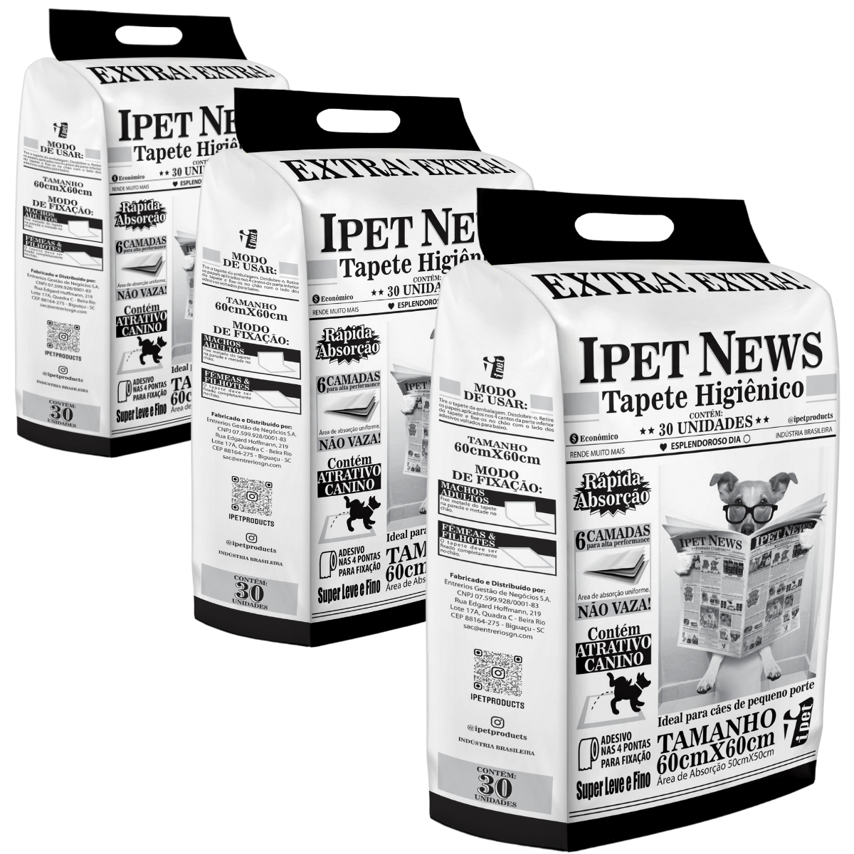 Kit 3 Tapetes higiênicos Pet Ipet News 60X60 Cães / Gatos